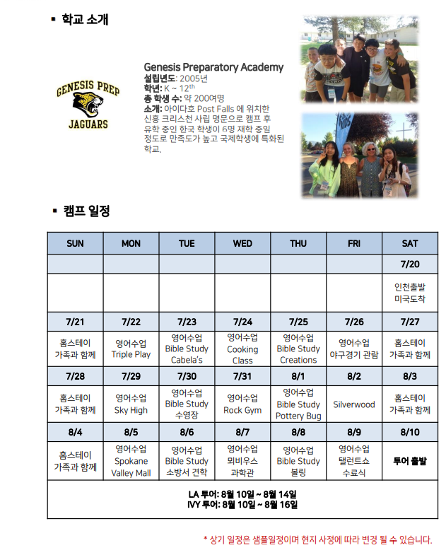미국여름캠프 ~~ 참고 후기 읽어 보시고 19년 자녀분 여름 캠프 참여 문의는