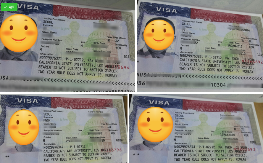 미국 동반비자 진행은 오랜 경험을 통한 빅테이터가 무엇보다 중요합니다. 비 정규직 재직증명서로 자녀 3명과 함께 미국 동반비자 합격 시키는 스터디 유학이 궁금하시다면 언제든지 연락주세요 ~^^ 02-723-8002 / 카톡 Studyuhak 스터디 유학은 방문전 전화 상담 필수랍니다~^^