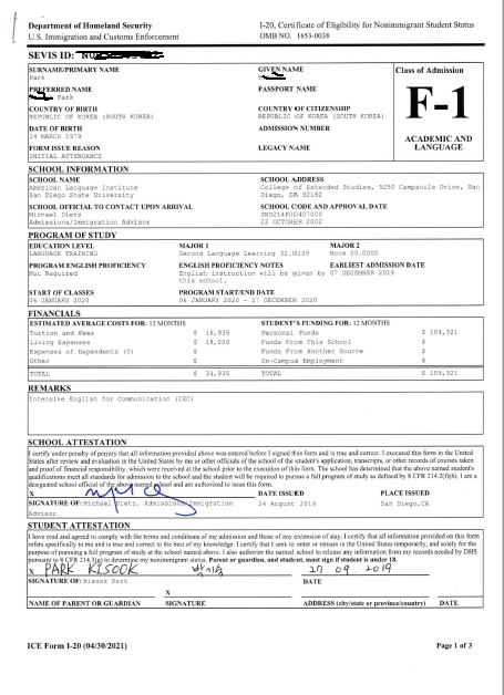 SDSU F1 입학허가서와 SDSU F2 입학허가서 랍니다. 미국 동반비자를 받기위해서는 위 서류가 반듯이 있어야 하며 ~