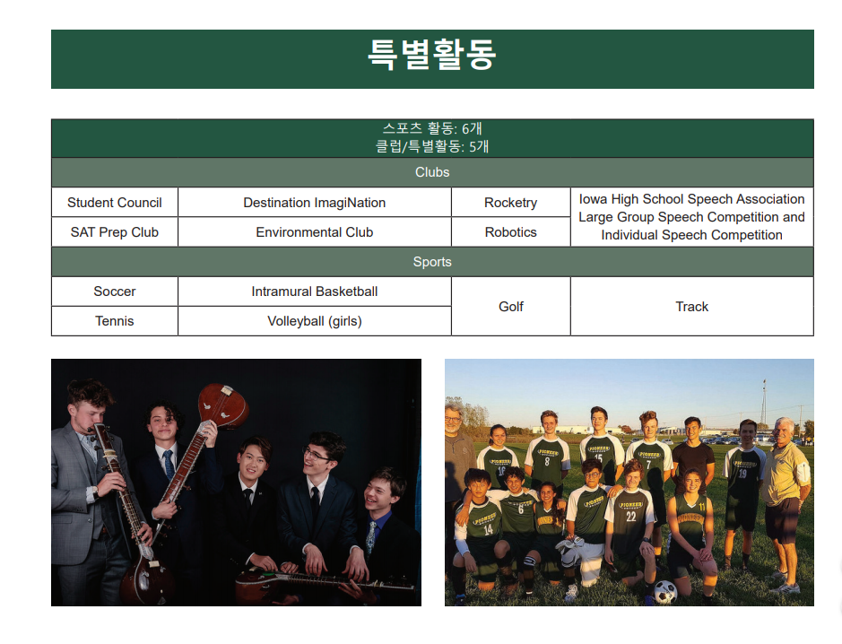 학교는 많은 스포츠활동과 특별활동에 학생들이 참여하도록 초대하고 권장하며 여러 주 챔피언쉽을 보유한
