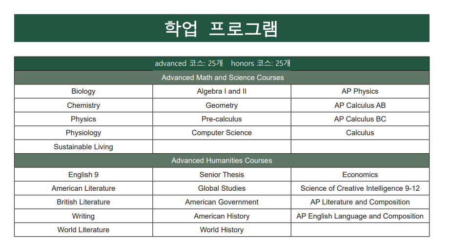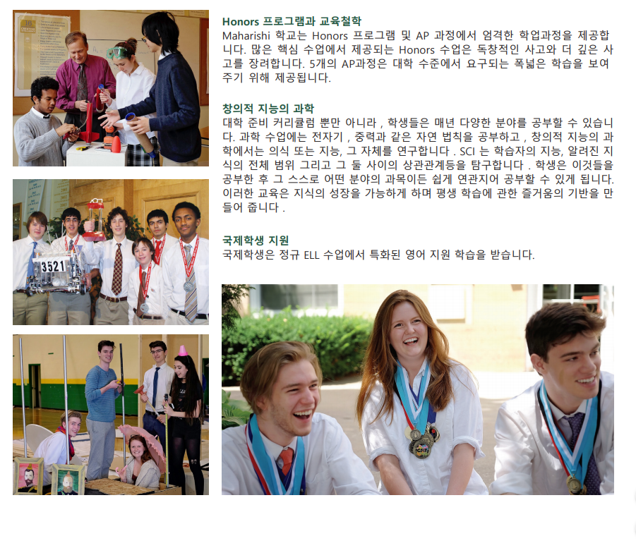 Maharishi School Fall 2020-2021: $44,000, 학비 장학 적용 후 -> $34,000(선착순 1명)