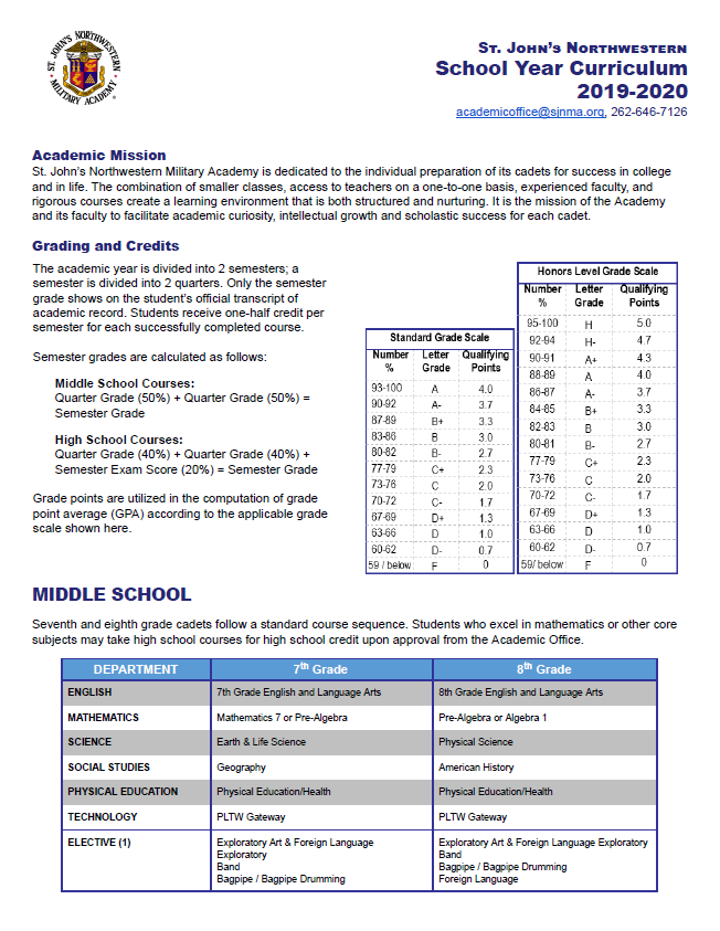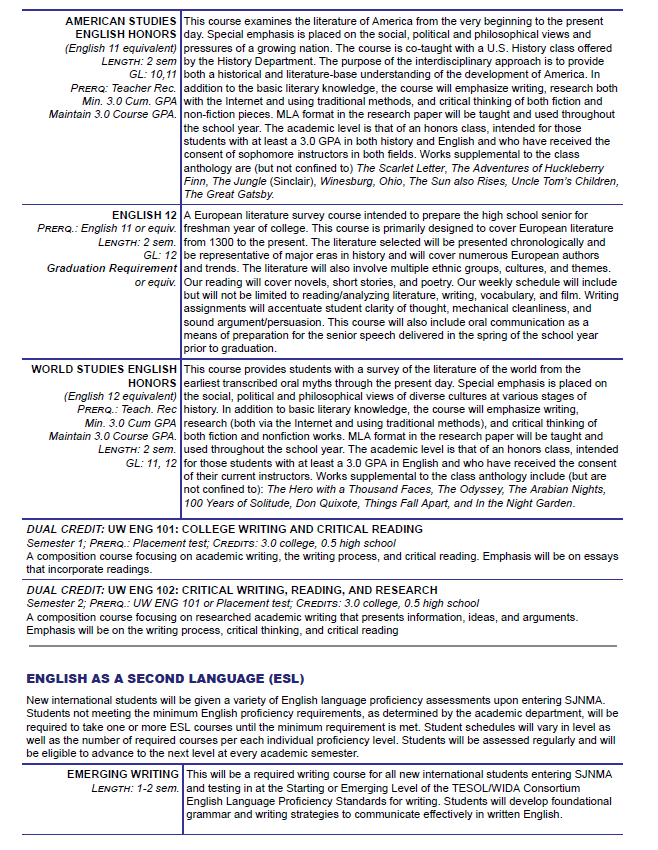 2019-20년 SJNLA - ST. JOHN’S NORTHWESTERN ACADEMIES Curriculum을 올려 드릴께요 ~