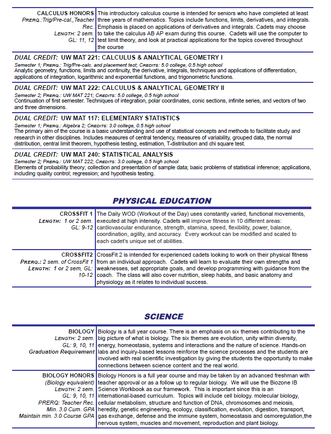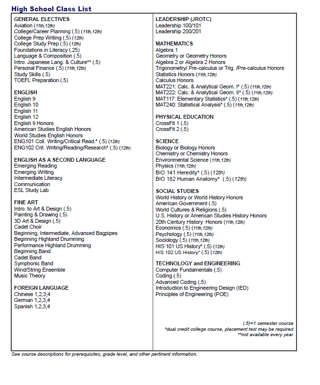 10. College Dual Credit Courses (대학 학점을 취득할 수 있는 기회 ) 대학 진학교과 과정 : 미적분 ,분석기하학Ⅱ,Elem모텔,통계분석,생물학의 개념, 해부학,미국역사
