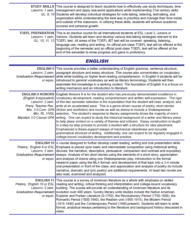 6.영어,수학, 과학, 사회,외국어,기술,JROTC,미술, 대학수업 진행