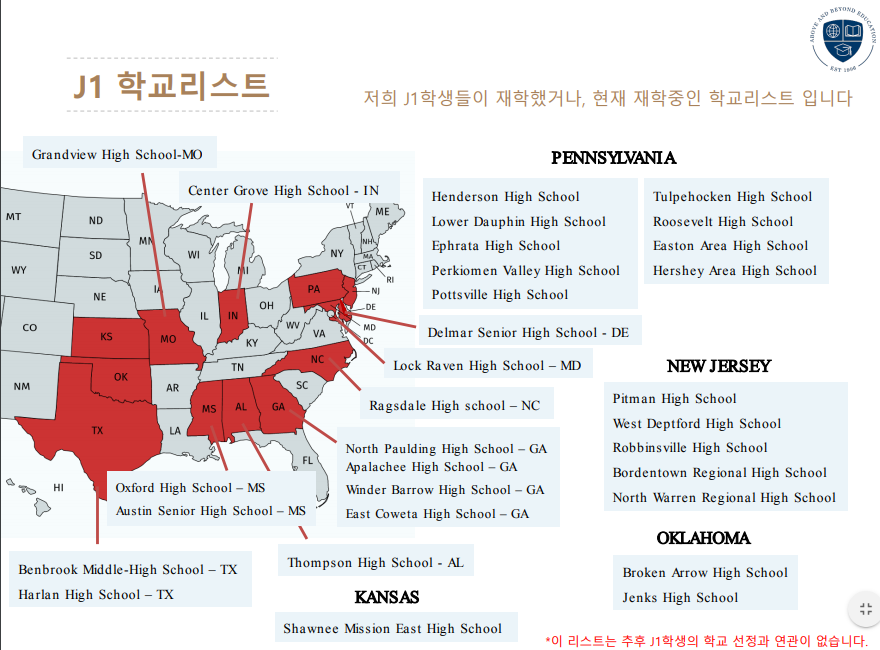 J1프로그램은 주로 사립학교로 입학을 하게 되는 F1 학생과 달리 ,미국 정부와 프로그램 스폰서 (J1재단)의 지원하에