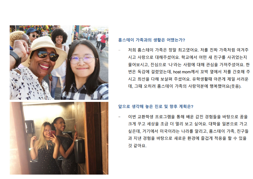 | 호스트 가족 선택 | 심사후 배정되는 홈스테이 가족 선택 가능 | 재단에서 홈스테이 배정 |