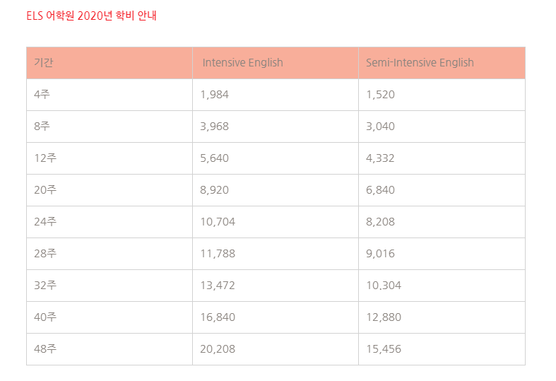 ELS 2020년 학비 궁하시죠?