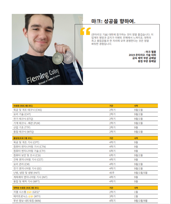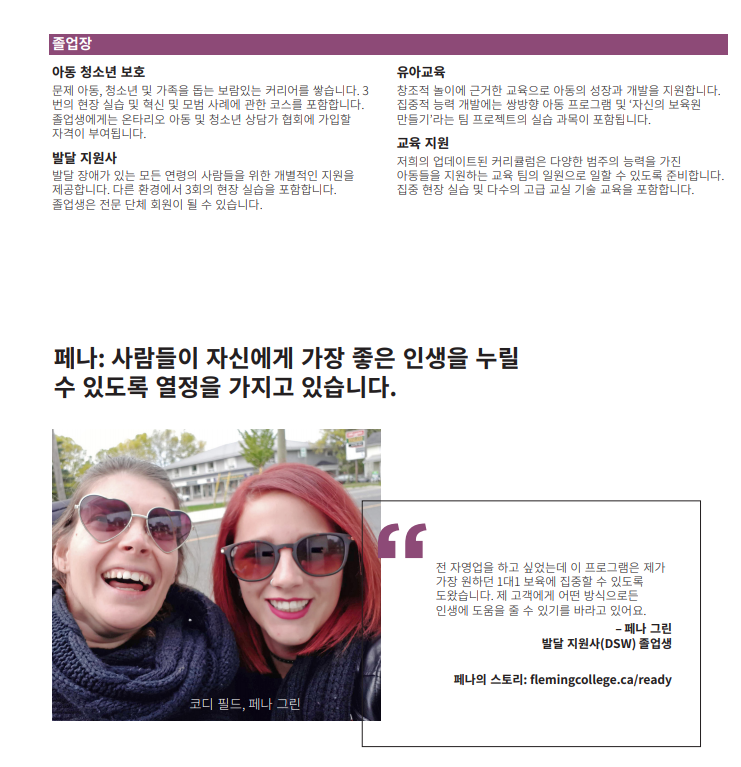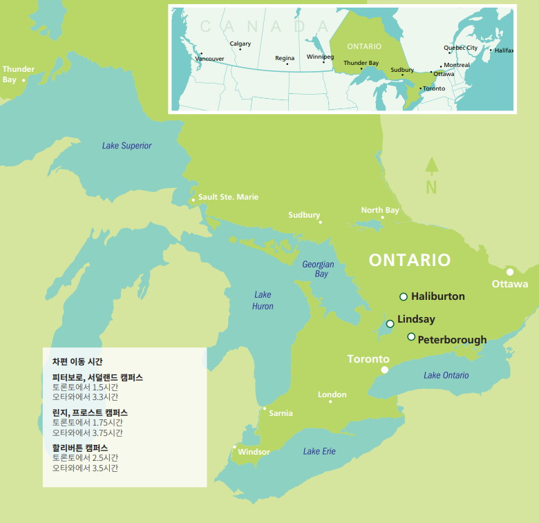 Fleming College에서 부모님중 한분이 학업을 유지하시면 자녀분 무상 교육이 가능하며 생활비가 저렴해서