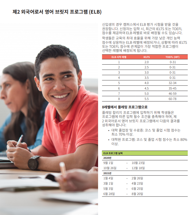 플레밍컬리지 학부 2년 혹은 대학원 수료과정 1년 또는 어학연수+ 플레밍컬리지 학부 과정을 연결해서