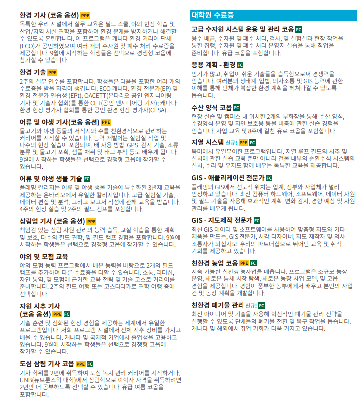 Fleming College에서 부모님중 한분이 학업을 유지하시면 자녀분 무상 교육이 가능하며 생활비가 저렴해서