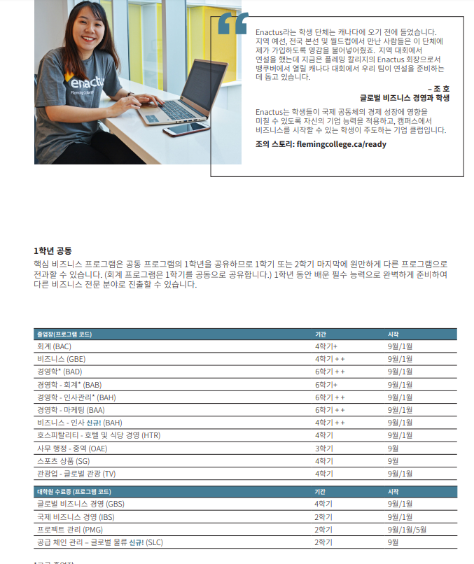 플레밍컬리지 학부 2년 혹은 대학원 수료과정 1년 또는 어학연수+ 플레밍컬리지 학부 과정을 연결해서