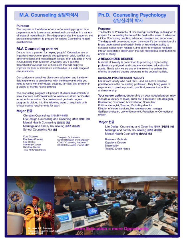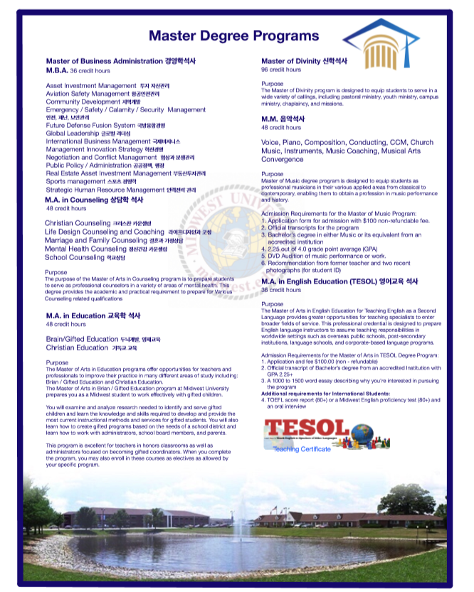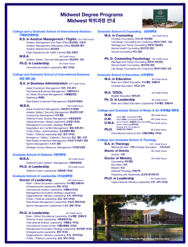 Midwest University (미드웨스트대학)의 Degree Programs ( 학위 과정 안내)