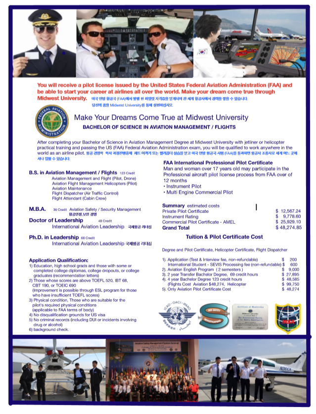 B.S. in International Aviation Management/ Flight 123 credit hours 국제 항공대학