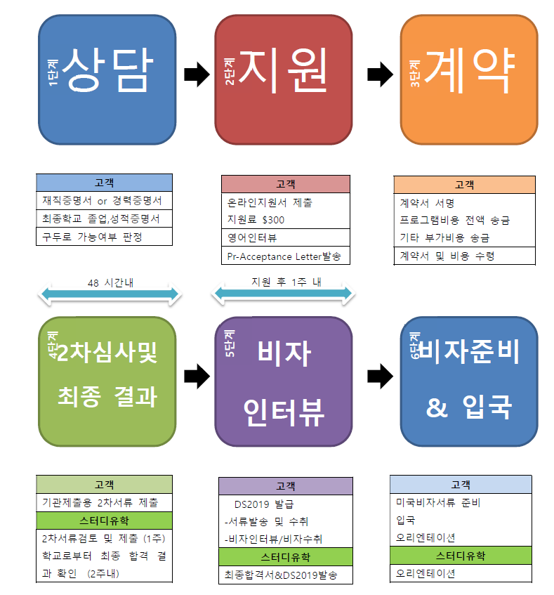 스터디유학 미국자녀동반 성공유학 진행 과정을 크게 6단계로 구분해 봤어요 .