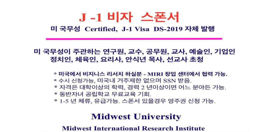 J-1 Visa DS-2019 자체 발급 Midwest University Research 가족 동반비자 진행 도와드립니다.