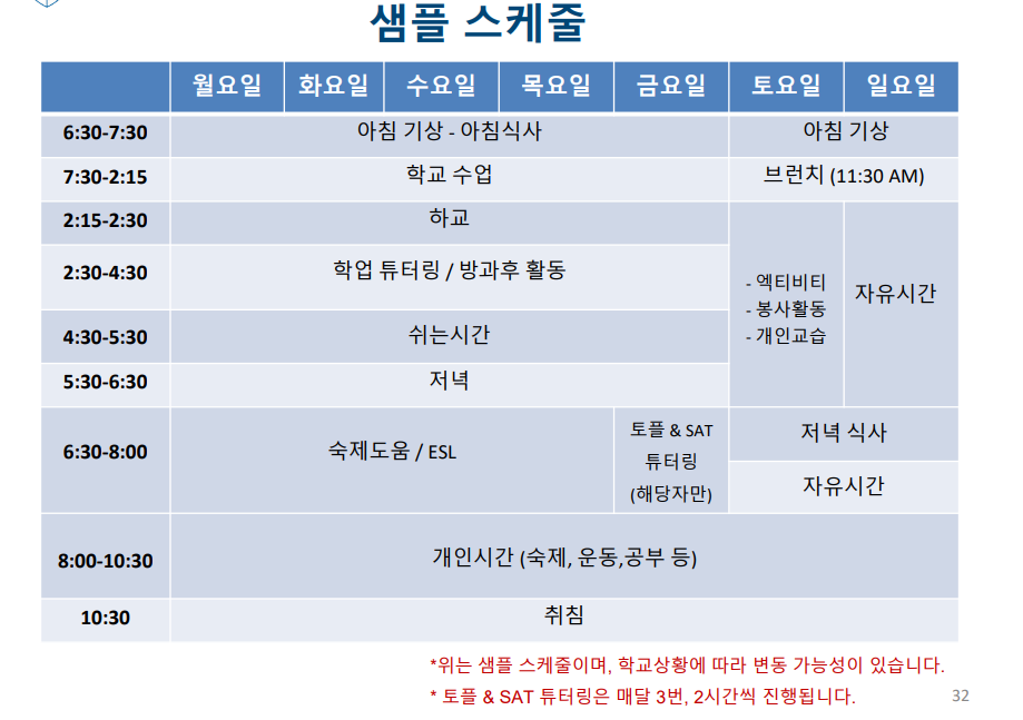 -학교 수업이외 무료 과외와 SAT대비반