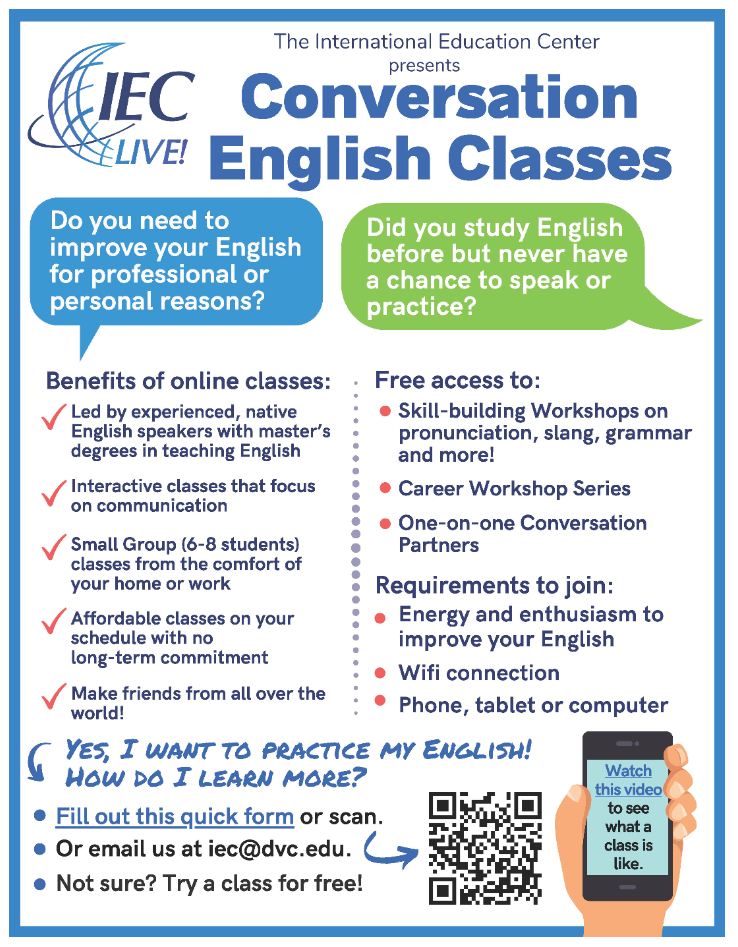 안녕하세요. 디아블로 밸리 컬리지 IEC에서 온라인 IEC 회화 집중 프로그램을 론칭했다고 합니다.