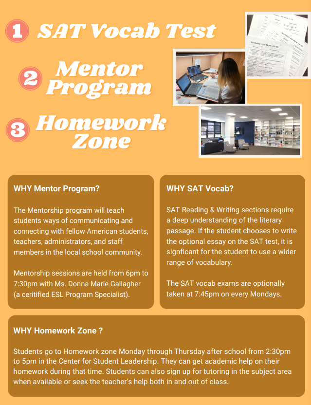 코넬이건 관리형 보딩스쿨은 월요일부터 목요일까지 방과후 2시간 동안 학교 Homework Zone에서 숙제 도움을 받고, 추가적인 학업지도가 필요한 학생은 각 과목 선생님과 appointment를 잡아 개인 지도를 받을 수 있습니다. 저녁식사 후 기숙사에서는 미국 생활 적응과 리더십 양성 취지의 Mentoring program을 진행합니다. Mentoring program은 온라인으로 진행하고 있답니다.