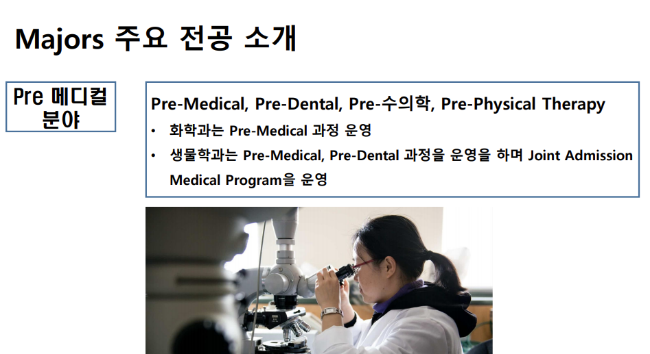 간호학, Pre-메디컬 등 100개 이상의 전공