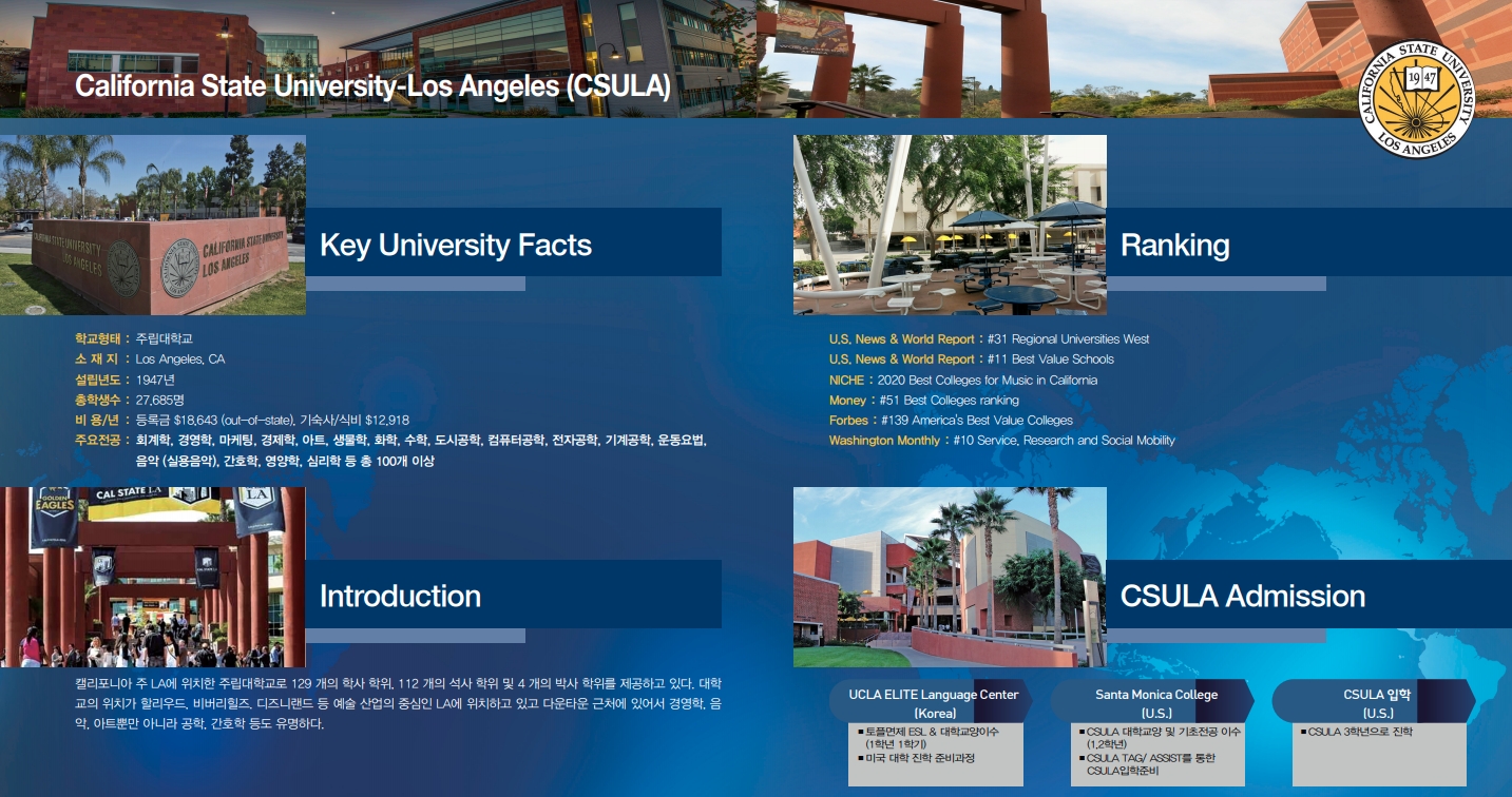 #1. No 토플, No SAT, No 수능, No 고교 내신 미국 명문 UCLA, CSULA진학 프로그램