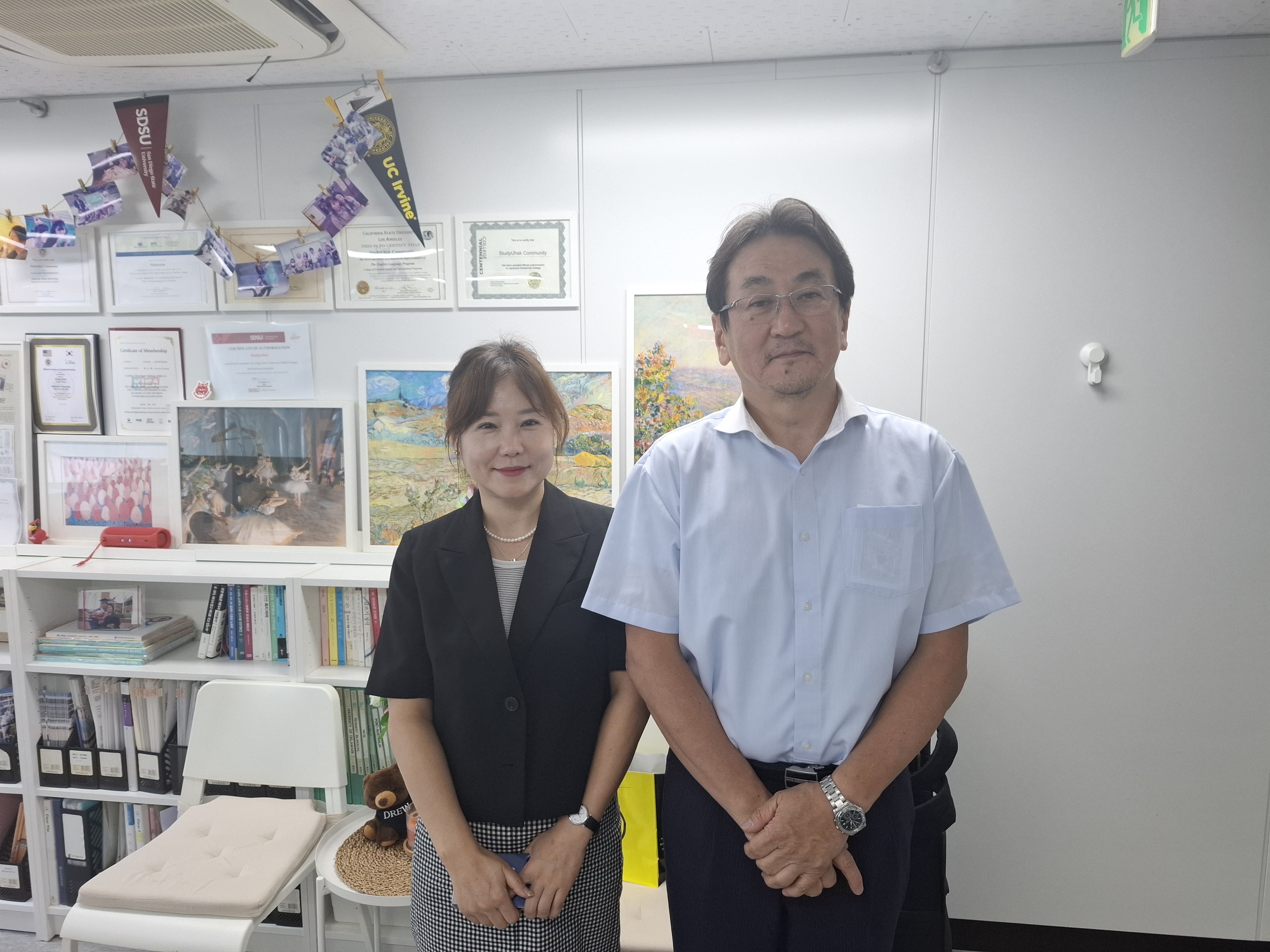 2025년 10월학기 일본 조기유학을 희망하는 학생이 스터디 유학에 메이케이고등학교 원서를 제출했어요. 메이케이고등학교 와다 선생님과 학생 입학 시험 날짜를 조율하면서 6월 14일 온라인 시험으로 확정 되었지만, 와다 선생님께서 학생을 직접 만나고 싶다는 열망으로 해외 출장 중에도 한국 학생의 입학 시험을 위해 직접 한국을 방문하셨 답니다. 한 명의 학생을 위해 국경을 넘어 찾아와 주시는 모습에서, 학교가 얼마나 학생 한 명 한 명을 소중히 생각하는지, 그리고 교육에 대한 진심과 책임감을 느낄 수 있었습니다.